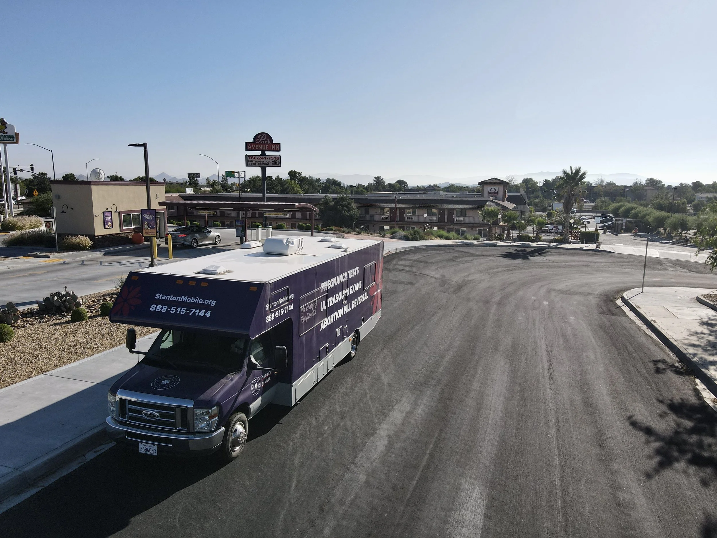 Our mobile is parked on Anacapa Rd between the Quick Quack Car Wash and the Kaiser medical building off Park Ave. We park between these two businesses on Anacapa Rd. We are a large purple bus, you won’t miss us!